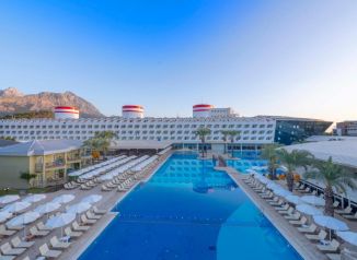 Основен ресторант, а-ла-карт ресторант (рибен - с предварителна резервация), 5 бара, сладкарница, открит и закрит басейн, водни пързалки, дискотека, амфитеатър, конферентни зали. За децата: Детски басейн с пързалки, анимация, мини клуб (4-12 г.), мини диско. Безплатни услуги: Сауна, турска баня, парна баня, фитнес, волейбол, анимация, паркинг. Платени услуги: Масаж, Спа център, фризьор, лекар, химическо чистене, билярд, рент -а-кар, тенис корт, тенис екипировка, осветление за тенис корт, магазини, водни спортове, WiFi интернет.