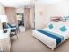 Разполага с общо 102 апартамента, обзаведени практично и удобно. Студио STUDIOS ( 48 – 51 м2 ), Апартаменти 2-ROOM APARTMENTS ( 78 – 90 м2 ), Всички стаи разполагат с напълно оборудван кухненски бокс и с трапезария, както и с климатик, телевизор, сешоар и ютия.