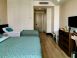 Всички стаи са оборудвани с климатик, телевизор, телефон, баня с душ, сешоар, минибар (зарежда се веднъж дневно с мин.вода, безалкохолни напитки и бира - безплатно), сейф (безплатен). Почистване на стаите – всеки ден, смяна на спалното бельо и кърпите – 2 пъти в седмицата.