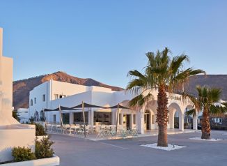 Aqua Blue Beach Hotel е разположен на плажа Периса и разполага с частен плаж с шезлонги и чадъри. Фира, оживената столица на Санторини, се намира на 15 км, а летище Санторини и пристанището са на 20 минути с автомобил. В близост до хотела има условия за водни спортове. Наблизо има и ресторанти, както и други възможности за развлечения.
