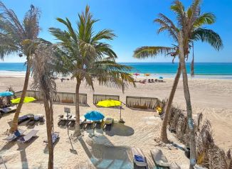 Собствен пясъчен плаж. Чадъри и шезлонги на плажа - безплатно.