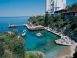 Собствен, пясъчно-чакълест и платформа в малък живописен залив. Достъпът до плажа е по стълби / с асансьор. Чадъри, шезлонги, матраци и кърпи – безплатно.