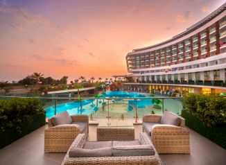 Основен ресторант, 1 а-ла-карт ресторант (рибен/турски – 1 безплатно посещение при минимум 7 нощувки), снек ресторант, сладкарница, 5 бара, 2 открити и 1 закрит басейн, аквапарк, амфитеатър, СПА център, 2 конферентни зали.