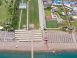 Собствен, на 250 м. от хотела, пясъчно-чакълест. Чадъри и шезлонги на плажа и при басейна - безплатно. Плажни кърпи – срещу депозит.