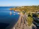 Собствен, пясъчно-чакълест с дължина на плажната ивица 95 м. Чадъри, матраци и шезлонги при басейна и на плажа, плажни кърпи - безплатно.