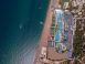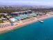 Собствен, пясъчно-чакълест, 350 м дълга плажна ивица. Чадъри, шезлонги и матраци на плажа и при басейните - безплатно, Плажни кърпи - безплатно. Кабани - срещу заплащане.
